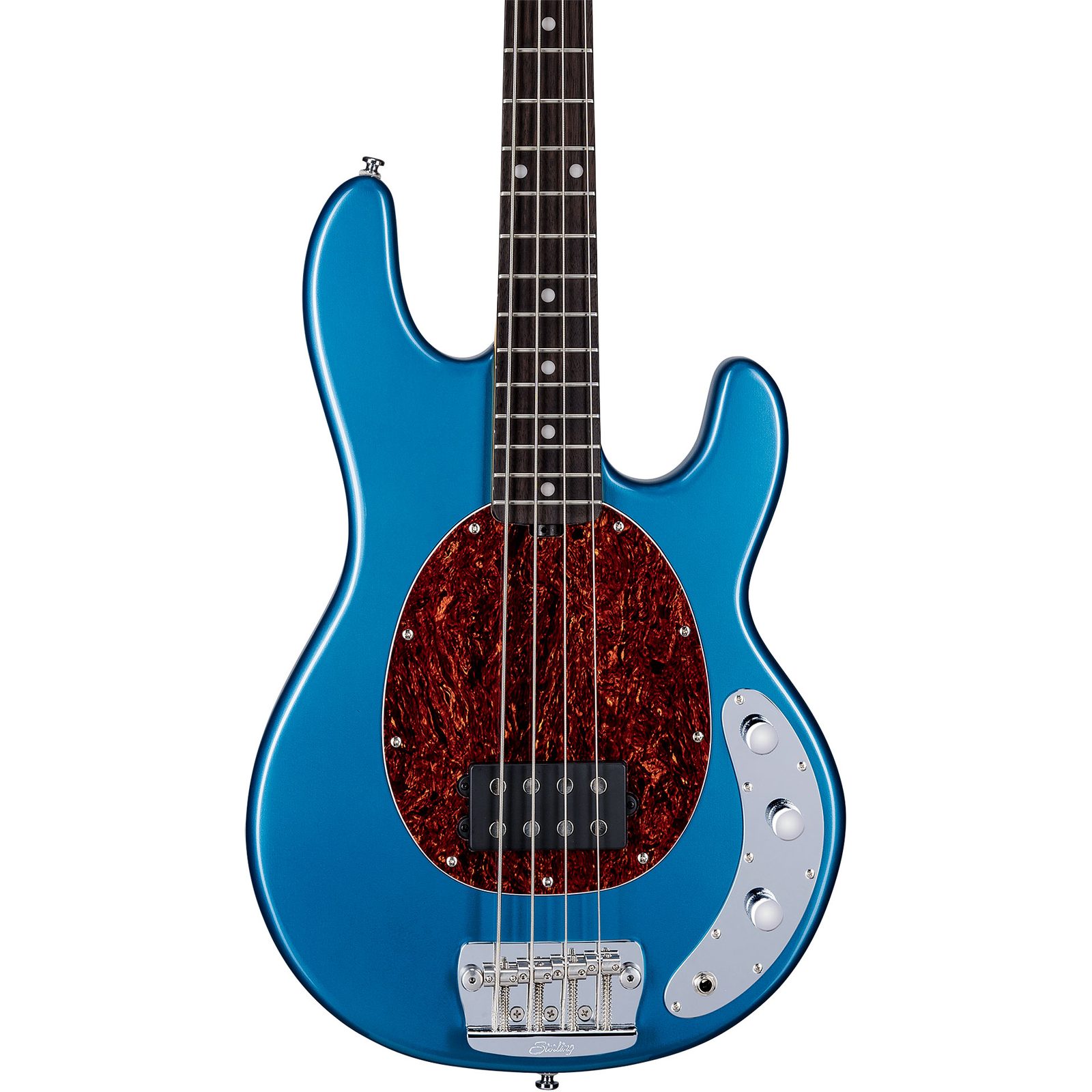 Baskytara Sterling by Music Man StingRay Classic RAY24CA-TLB v barvě Toluca Lake Blue je cenově dostupný nástroj inspirovaný původními modely StingRay ze 70. let. Vyznačuje se typickým "slab" tělem bez kontur, aktivní elektronikou a užším krkem s šířkou nultého pražce 38 mm.