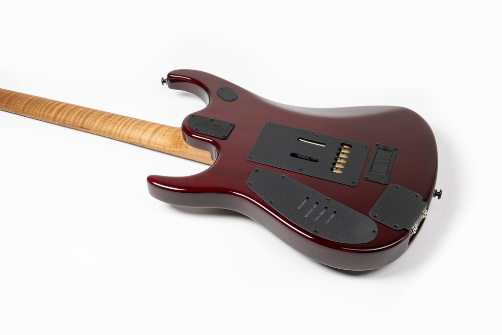 - Tělo: Každá kytara je vyrobena pouze z těch nejlepších, akusticky nejvíce rezonujících dřevin, kde každá kytara je postaveným mistrovským dílem. Tělo nástroje je z Okoume s přední deskou z žíhaného javoru.