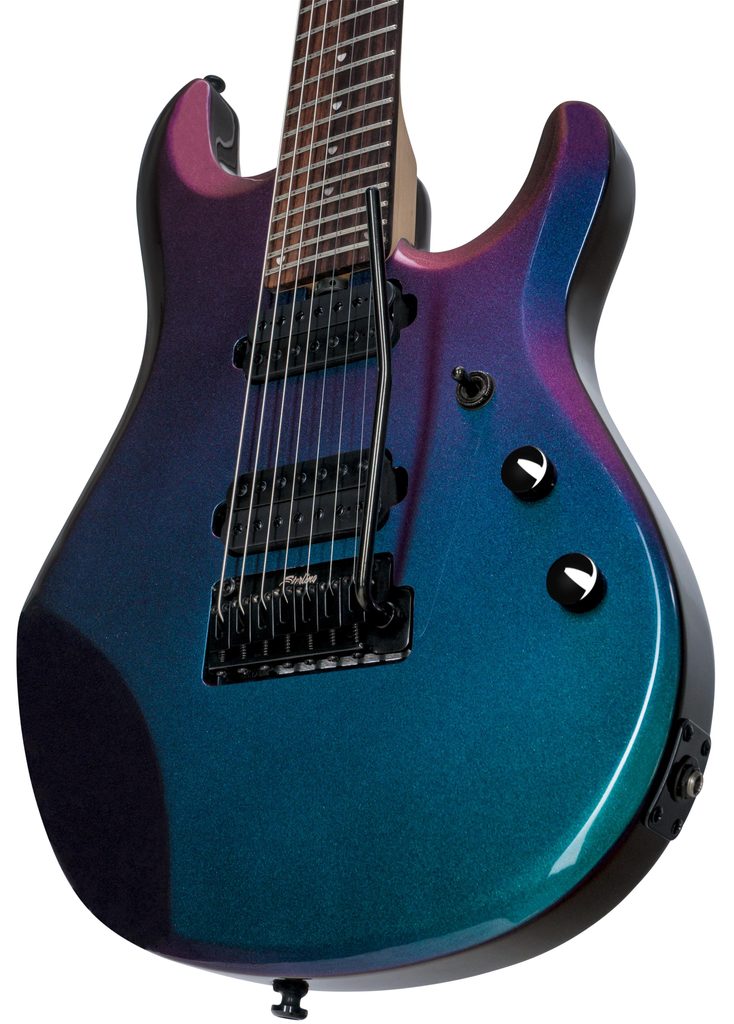 Sedmistrunná elektrická kytara Sterling by Music Man JP70-MDR-R1 je signature model Johna Petrucciho v ikonickém měňavém laku Mystic Dream, který mění barvu podle úhlu dopadu světla. Vychází z designu prestižního modelu Ernie Ball Music Man JP7 a je navržena pro progresivní metal a technicky náročnou hru.
