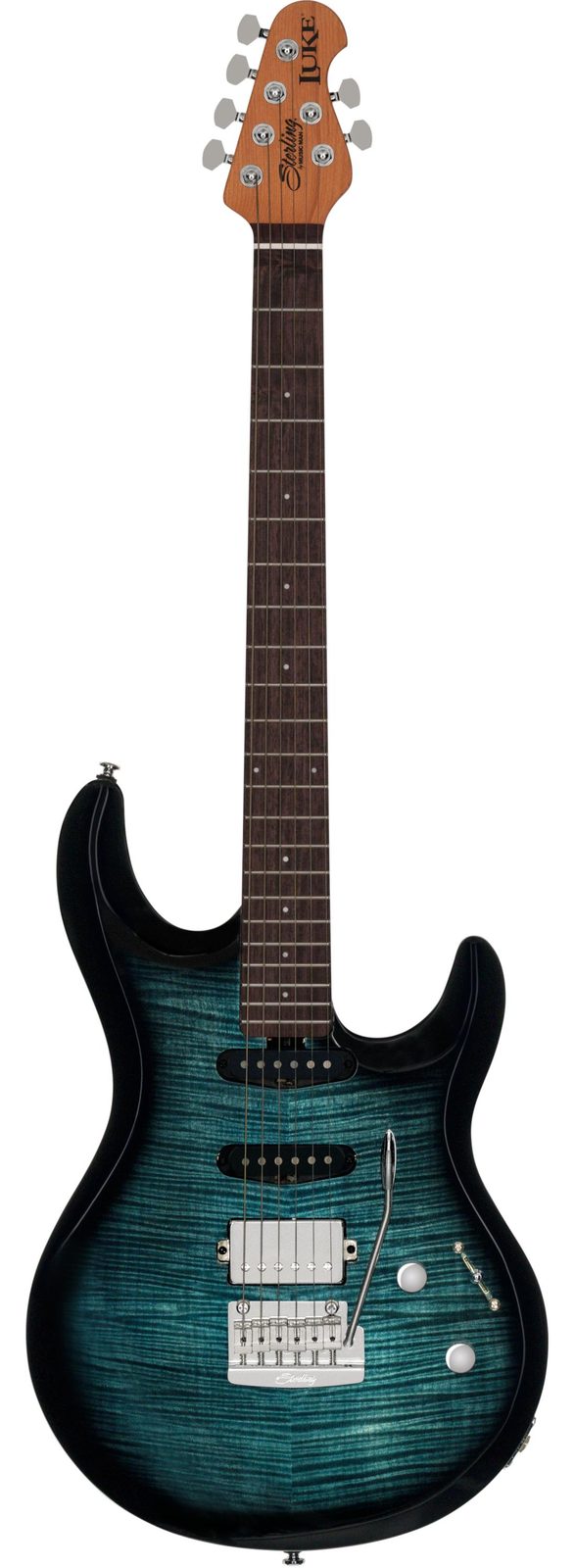 Elektrická kytara Sterling by Music Man Luke LK100HSS v provedení Yucatan Blueje signature modelem legendárního kytaristy Steva Lukathera. Tato verze s konfigurací snímačů HSS nabízí vysokou zvukovou variabilitu od krystalicky čistých tónů až po sytý rockový zvuk, podpořený integrovaným aktivním zesílením.