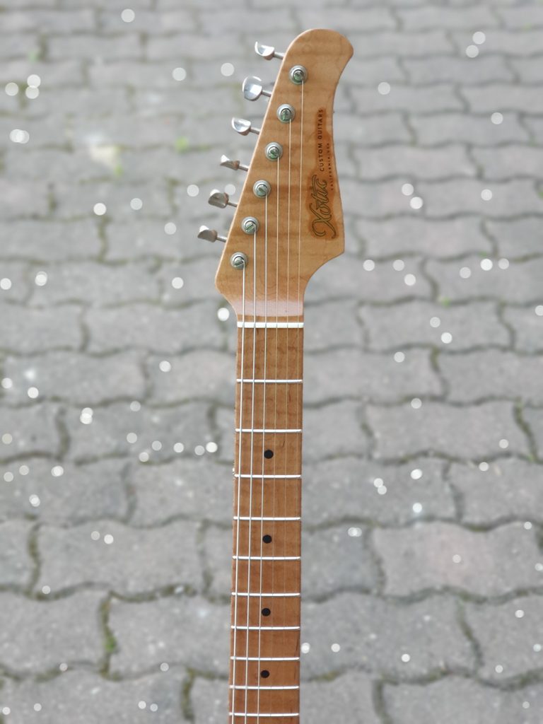 - Krk: Krk a hmatník je vyroben ze speciálně vybíraného " Opečeného žíhaného javoru " - Flame Roasted Maple. Díky modernímu profilu krku tvaru C, poloměru 9.5" a pražcům Jescar FW51108 je hra pohodlná a důvěrně známá.