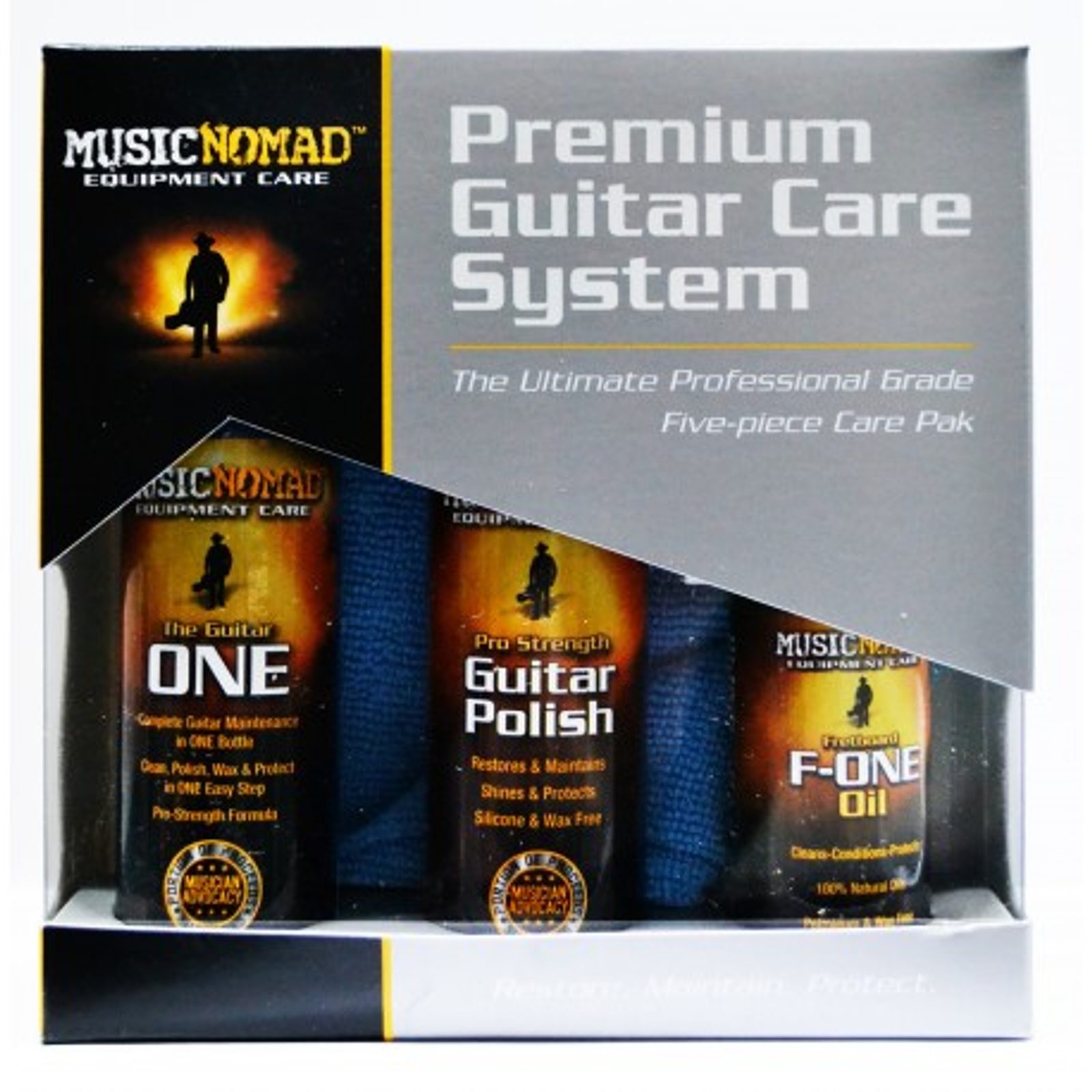 • MusicNomad MN144 Total Fretboard Care Kit - FRINE Kit (MN124) + F-ONE (MN105) - profesionální set na údržbu hmatníku MusicNomad MN108 Premium Guitar Care System (5 Pak)- MN103,MN101,MN105,MN201,MN202