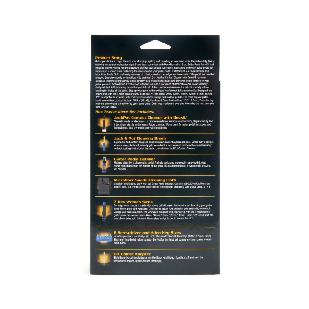MusicNomad MN286 Pedal Care Kit je 12-dílná, komplexní sada, která obsahuje vše, co potřebujete pro profesionální čištění, seřizování a údržbu všech typů efektových pedálů (stompboxů) – od vintage po moderní. Čistý a správně seřízený pedál znamená lepší zvuk a delší životnost vaší investice.
