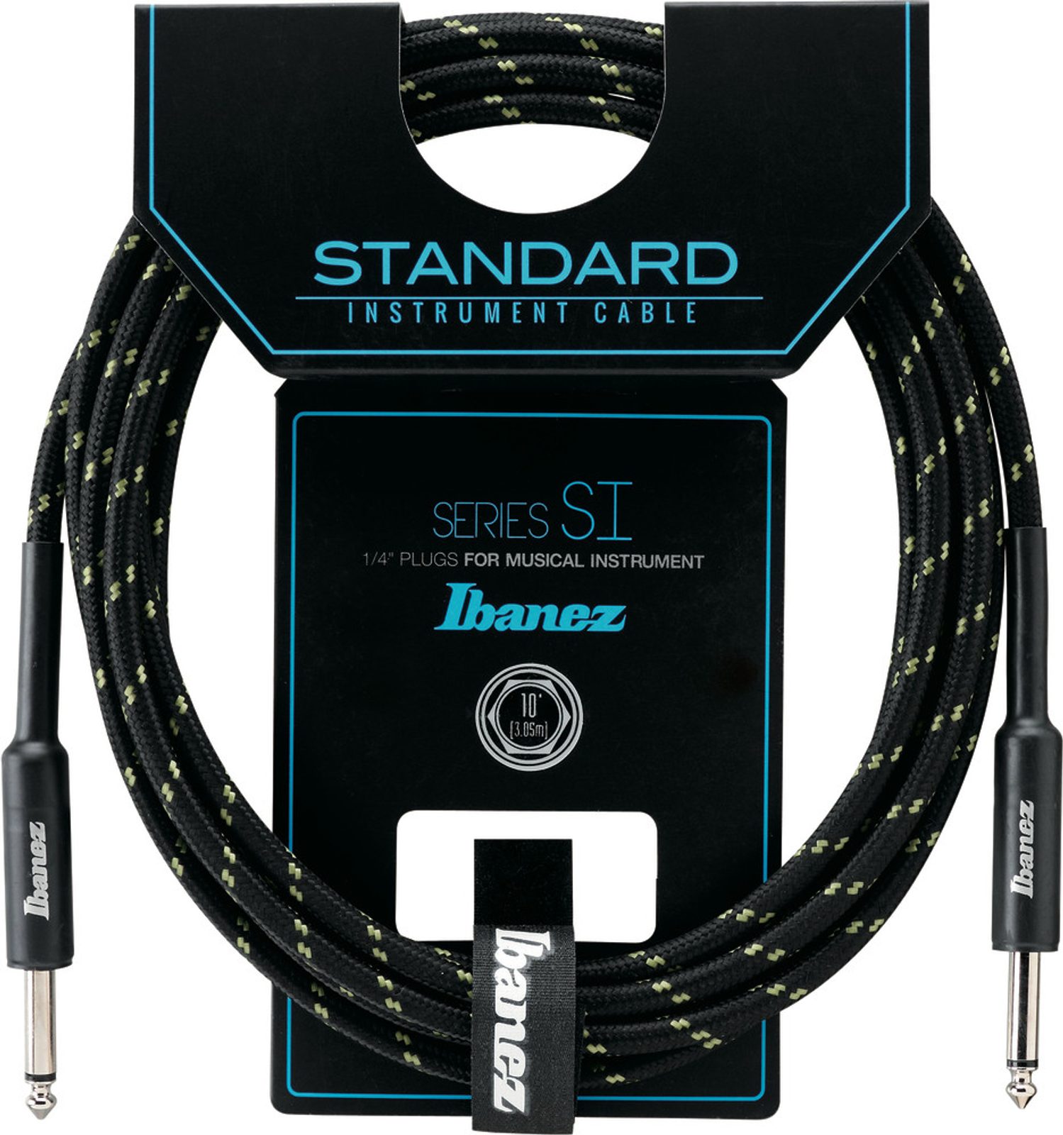 Ibanez SI10 - BG Series (Standard) Guitar Instrument Cable - Black / Green - 3.05 m - nástrojový " opletený " kabel - 1ks