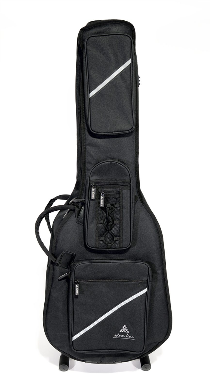 Černý polstrovaný obal na akustickou kytaru, model Silver Line, odolný proti vodě a roztržení. 3x multikapsa, 2x prošívané zádové popruhy.
