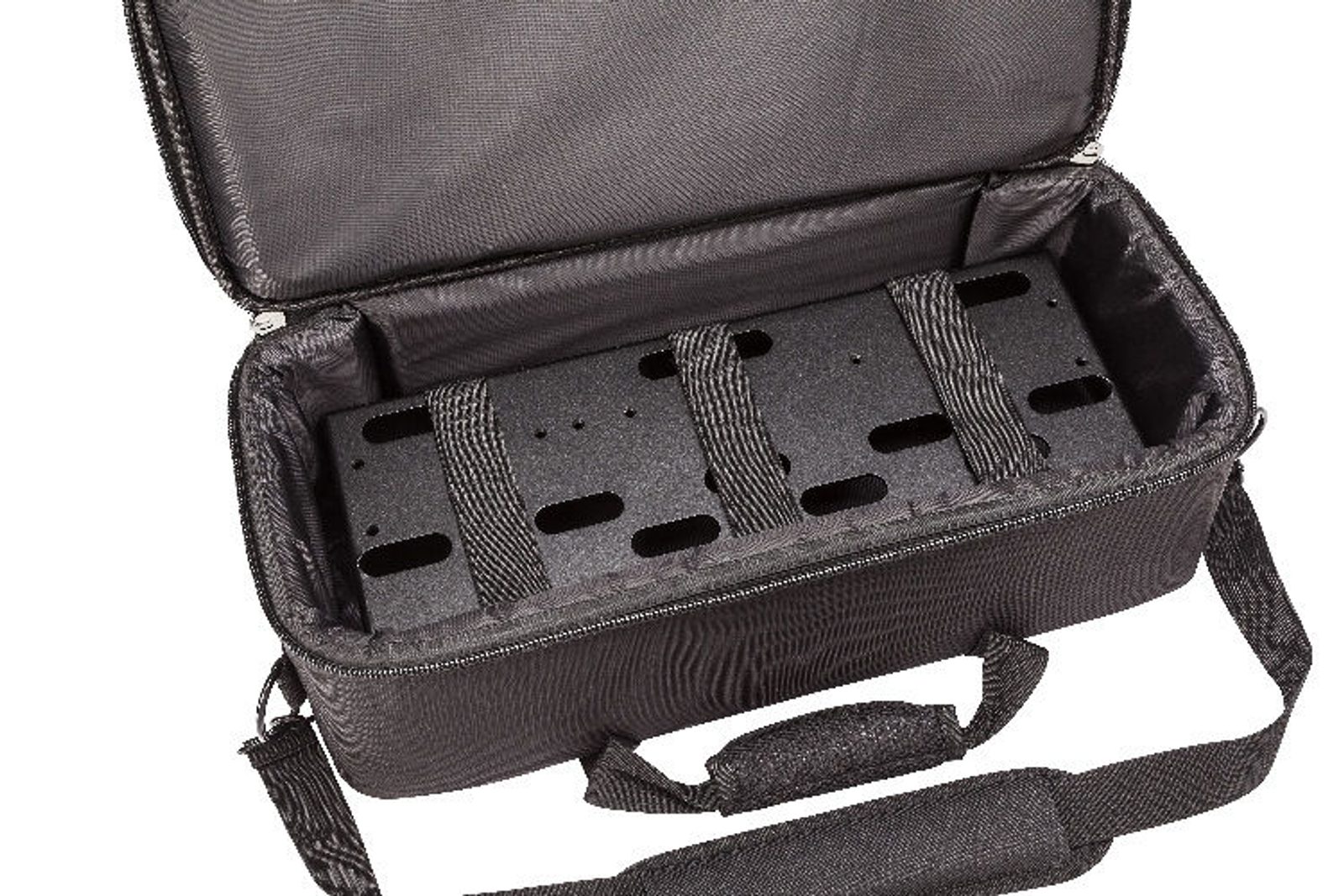Lehký hliníkový pedalboard v tašce z balistickeho nylonu s VoodooLab napáječem Pedal Power 2 Plus.