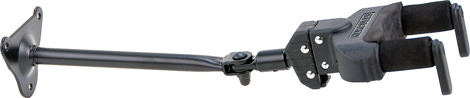 Držák na kytaru na zeď se standardním šroubovacím systémem pro připevnění na zeď a nastavitelným třmenem, který umožňuje obrácení nástroje doleva, doprava nebo vpředu. Třmen AutoSwivel má také věšák AGS, který se může automaticky otáčet pro různé tvarované kytary a basy a systém Auto Grip, který nástroj bezpečně a bezpečně drží. Speciálně formulovaná pěna zcela zakrývá jho, čímž zabraňuje poškrábání nebo poškození povrchu kytary.