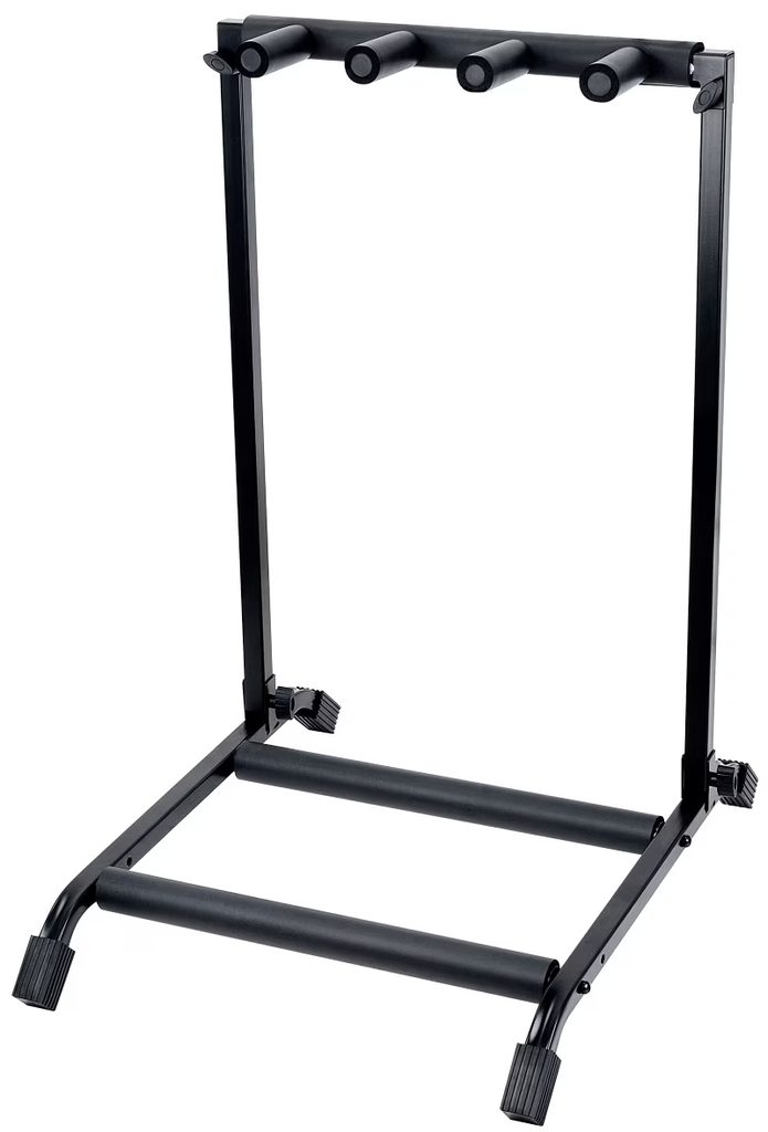 Části přicházející do styku s nástroji jsou opatřeny pogumovanou vrstvou tak, aby nedošlo k poškození laku kytar. Stabilitu stojanu zaručuje základna na čtyřech nohách. Ve složeném stavu zabírá minimum místa, představujete tak ideální volbu na domácí i živé hraní spojené s cestováním.