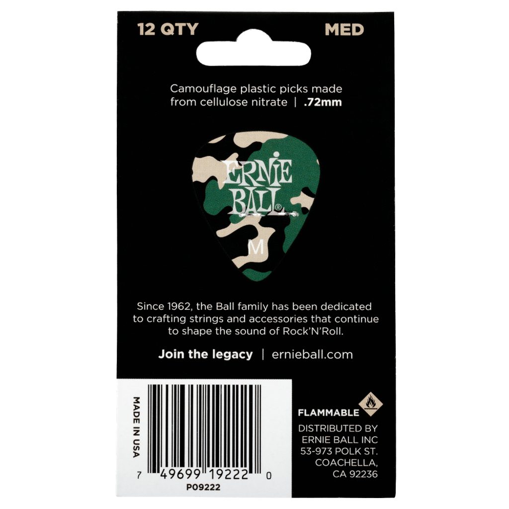 9222 Ernie Ball Camouflage Medium 0.72mm Cellulose Pick - kamufláž design, celuloidové trsátko - 12ks