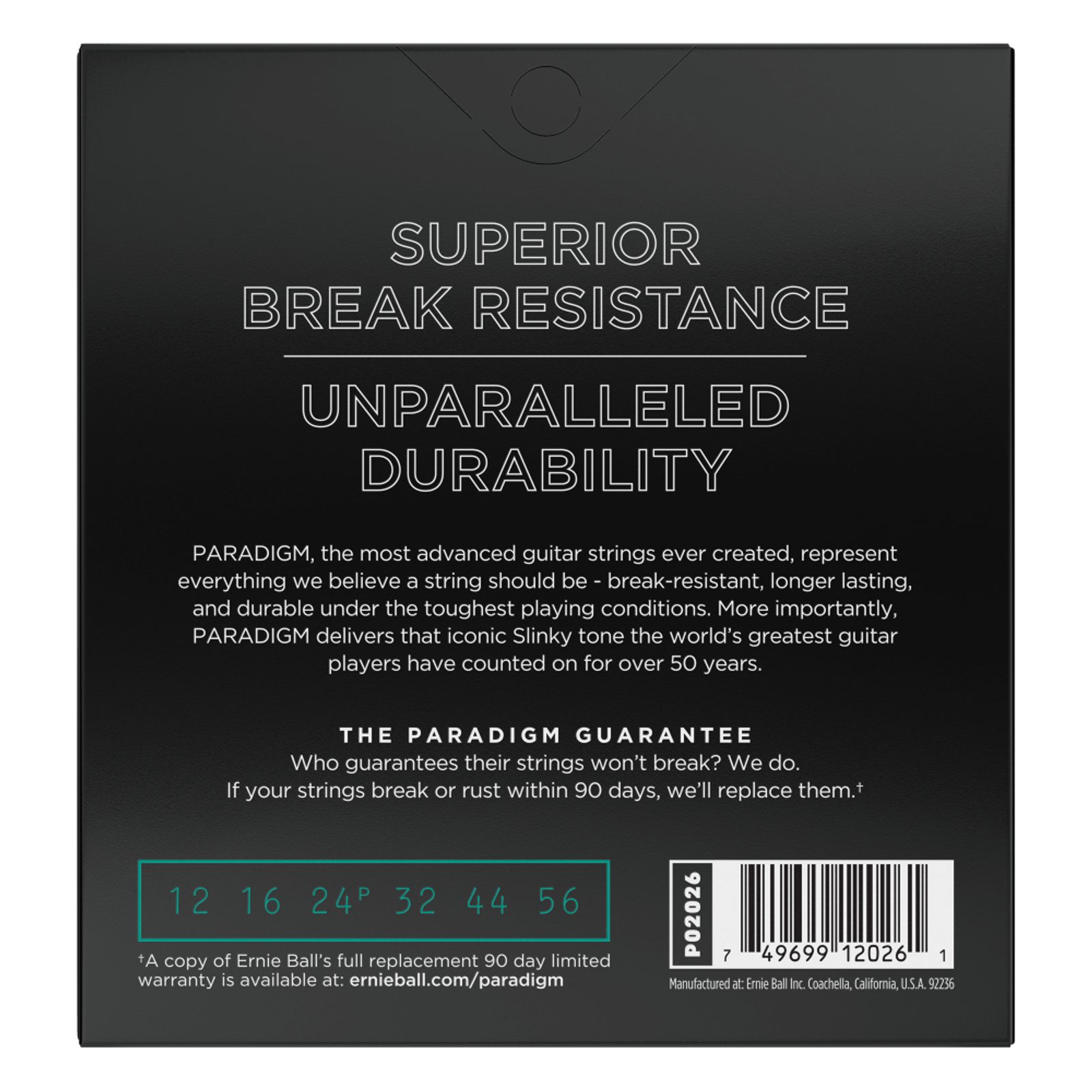 Ernie Ball Paradigm struny pro elektrickou kytaru jsou naprosto odolné proti působení vnějšího prostředí, korozi a přetrhnutí díky speciálnímu plasmatickému ošetření slitiny. Nabízí klasický Slinky tón s přídavkem nejpokrokovějšího zpracování, které odolá i nejagresivnějšímu zacházení. Jsou vhodné do jakýchkoli podmínek díky své stálosti a odolnosti. John Petrucci nebo Kenny Wayne je nedokázali přetrhnout a jejich snahu a agresivní hru by normální struny za žádných okolností nemohly vydržet. Pokud se o to budete pokoušet Vy, nejspíš Vás to po čase začne nudit.