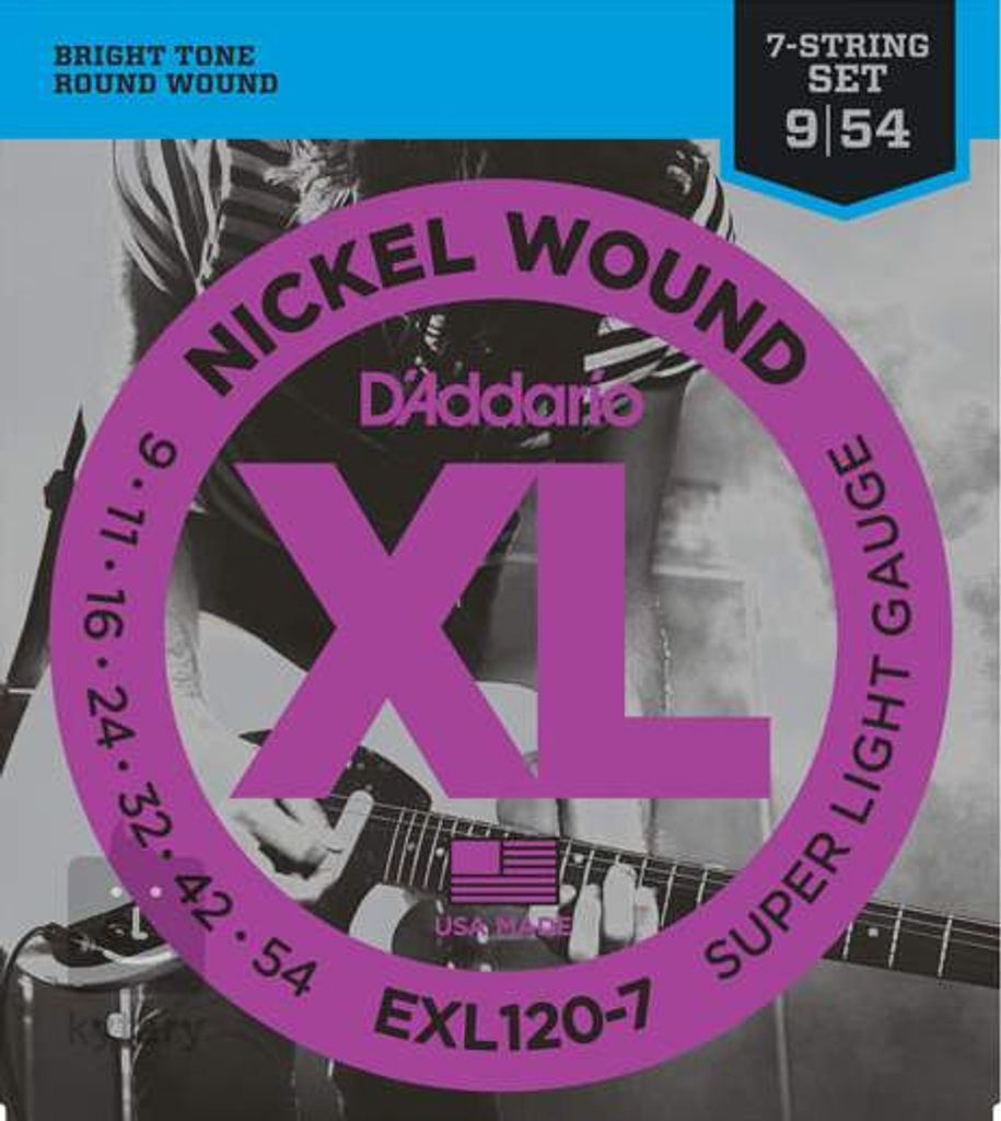 D'Addario EXL120-7 Super Light - .009 - .054 Nickel Wound- struny na sedmistrunnou elektrickou kytaru